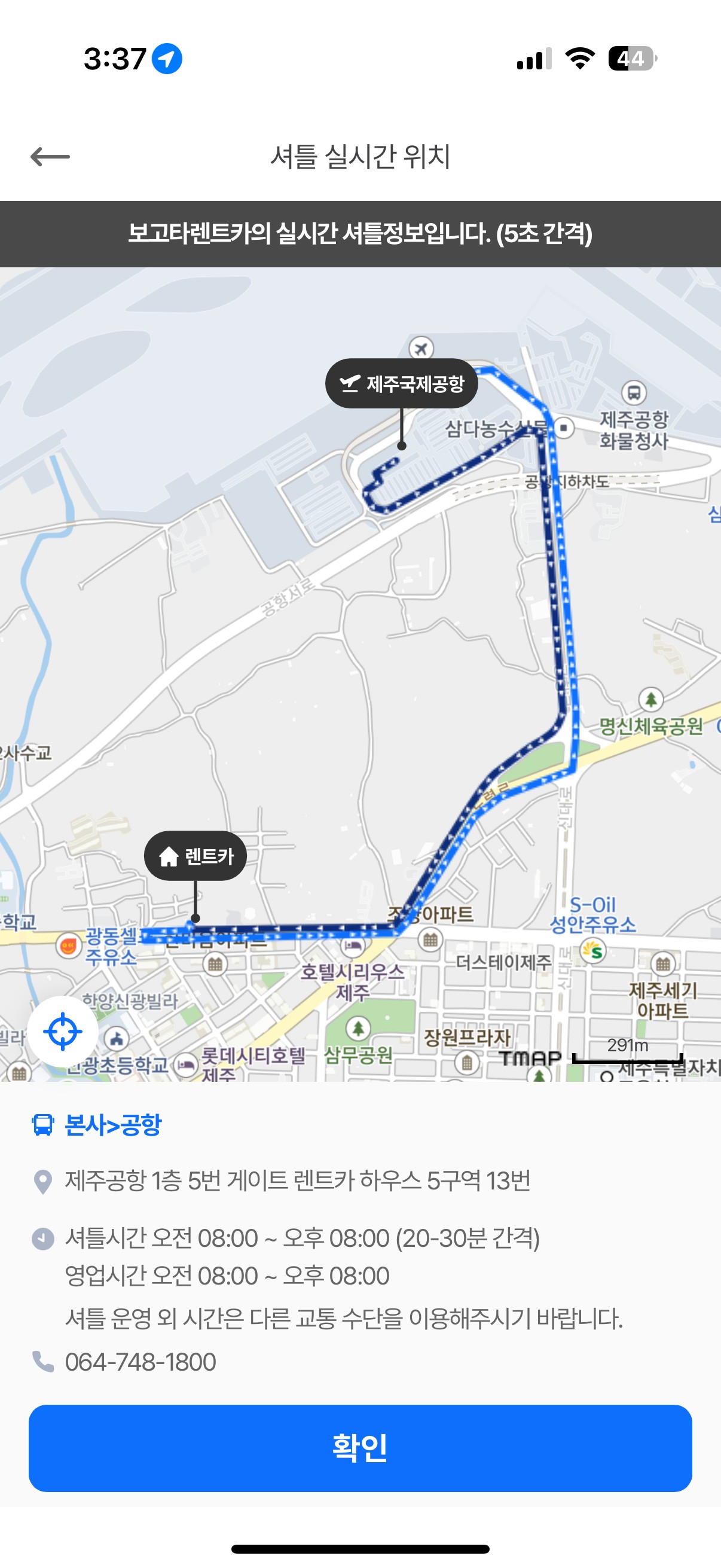 모아렌트카의 실시간 셔틀정보입니다. (5초 간격)